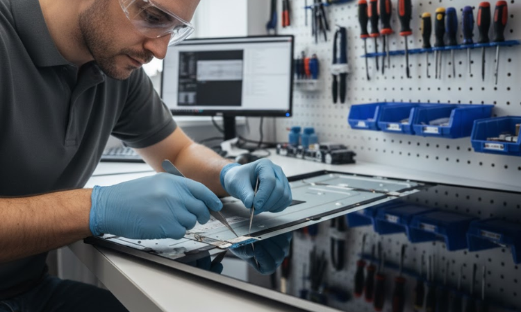 analyzers, BGA rework stations, and LED testers. Each repair undergoes a multi-stage quality